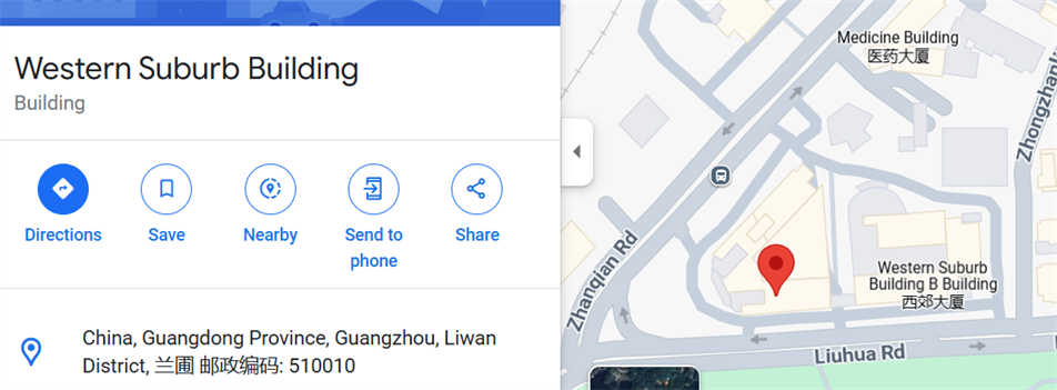 Office address: Room B1206, Western Suburb Building, No. 11 Liuhua Road, Liwan District, Guangzhou City, Guangdong Province, China Postal Code: 510010